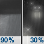 Temperature: 73°F Wind Speed: 7 to 13 mph Wind Direction: SW Forecast: A slight chance of rain showers before 2pm, then a chance of showers and thunderstorms. Mostly sunny, with a high near 73. |