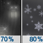 Temperature: 26°F Wind Speed: 6 mph Wind Direction: SSW Forecast: A chance of rain before midnight, then rain and snow likely. Mostly cloudy, with a low around 26. |