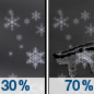 Temperature: 24°F Wind Speed: 5 to 9 mph Wind Direction: S Forecast: A chance of snow showers between 7pm and 1am, then snow showers likely and freezing rain likely. Cloudy, with a low around 24. Chance of precipitation is 70%. |