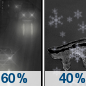 Temperature: 41°F Wind Speed: 2 to 6 mph Wind Direction: N Forecast: A chance of snow before 7am. Mostly sunny, with a high near 41. North wind 2 to 6 mph. Chance of precipitation is 30%. New snow accumulation of less than half an inch possible. Little or no ice accumulation expected. |
