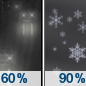 Temperature: 34°F Wind Speed: 5 to 15 mph Wind Direction: NW Forecast: Snow before 1pm. Mostly cloudy. High near 34, with temperatures falling to around 23 in the afternoon. Northwest wind 5 to 15 mph, with gusts as high as 30 mph. Chance of precipitation is 90%. New snow accumulation of 3 to 5 inches possible. |