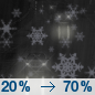Temperature: 21°F Wind Speed: 5 to 10 mph Wind Direction: NW Forecast: A chance of snow showers before 9pm. Partly cloudy, with a low around 21. Chance of precipitation is 30%. |