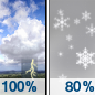 Temperature: 33°F Wind Speed: 10 mph Wind Direction: W Forecast: A chance of rain and snow before 7pm. Mostly cloudy, with a low around 33. |