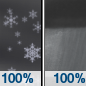 Temperature: 31°F Wind Speed: 5 to 10 mph Wind Direction: NE Forecast: Rain likely before 3am, then rain and snow likely. Cloudy, with a low around 31. |