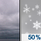 Temperature: 24°F Wind Speed: 6 mph Wind Direction: S Forecast: A chance of snow. Mostly cloudy, with a low around 24. Chance of precipitation is 50%. |