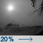 Temperature: -4°F Wind Speed: 8 mph Wind Direction: W Forecast: A slight chance of snow showers. Mostly cloudy, with a low around -4. Chance of precipitation is 20%. |