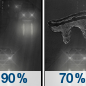 Temperature: 29°F Wind Speed: 6 to 10 mph Wind Direction: NE Forecast: Rain before 4am, then a chance of freezing rain. Cloudy, with a low around 29. Northeast wind 6 to 10 mph. Chance of precipitation is 90%. Little or no ice accumulation expected. |