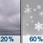 Temperature: 20°F Wind Speed: 10 mph Wind Direction: SSW Forecast: Snow likely after 1am. Mostly cloudy, with a low around 20. South southwest wind around 10 mph, with gusts as high as 20 mph. Chance of precipitation is 70%. New snow accumulation of 1 to 3 inches possible. |