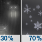 Temperature: 26°F Wind Speed: 15 to 20 mph Wind Direction: SSW Forecast: Rain likely before 4am, then rain and snow likely. Mostly cloudy. Low around 26, with temperatures rising to around 33 overnight. South southwest wind 15 to 20 mph, with gusts as high as 30 mph. Chance of precipitation is 70%. New rainfall amounts less than a tenth of an inch possible. |