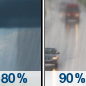 Temperature: 31°F Wind Speed: 1 to 5 mph Wind Direction: ESE Forecast: Rain and snow showers likely before 3am, then a slight chance of rain and snow showers between 3am and 4am, then a chance of rain and snow showers between 4am and 5am, then patchy fog and a chance of rain and snow showers. Cloudy, with a low around 31. East southeast wind 1 to 5 mph. Chance of precipitation is 70%. New rainfall amounts between a tenth and quarter of an inch possible. |