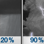 Temperature: 73°F Wind Speed: 10 to 15 mph Wind Direction: W Forecast: Showers and thunderstorms before 1pm. Partly sunny. High near 73, with temperatures falling to around 67 in the afternoon. West wind 10 to 15 mph, with gusts as high as 25 mph. Chance of precipitation is 90%. New rainfall amounts between a half and three quarters of an inch possible. |