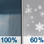 Temperature: 19°F Wind Speed: 7 mph Wind Direction: W Forecast: A chance of snow showers. Mostly cloudy, with a low around 19. |