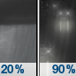 Temperature: 46°F Wind Speed: 5 mph Wind Direction: NE Forecast: A slight chance of rain showers. Mostly cloudy, with a low around 46. |
