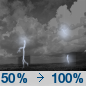 Temperature: 54°F Wind Speed: 10 to 17 mph Wind Direction: S Forecast: A chance of thunderstorms and a chance of rain before midnight, then rain and a chance of thunderstorms. Mostly cloudy. Low around 54, with temperatures rising to around 61 overnight. South wind 10 to 17 mph, with gusts as high as 28 mph. Chance of precipitation is 100%. |