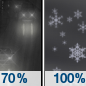 Temperature: 42°F Wind Speed: 7 to 12 mph Wind Direction: SW Forecast: Snow likely before 9am, then rain and snow likely. Mostly cloudy, with a high near 42. Chance of precipitation is 60%. |