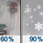 Temperature: 27°F Wind Speed: 6 mph Wind Direction: NE Forecast: Rain and snow before 10pm, then snow likely and freezing rain likely. Cloudy, with a low around 27. Northeast wind around 6 mph. Chance of precipitation is 90%. New snow accumulation of less than half an inch possible. Little or no ice accumulation expected. |