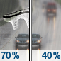 Temperature: 45°F Wind Speed: 6 to 9 mph Wind Direction: S Forecast: Rain likely after 7am. Mostly cloudy, with a high near 45. Chance of precipitation is 70%. New rainfall amounts between a tenth and quarter of an inch possible. |