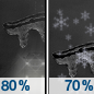 Temperature: 27°F Wind Speed: 12 to 15 mph Wind Direction: ENE Forecast: Snow likely before 1am, then snow and freezing rain and a slight chance of sleet. Mostly cloudy, with a low around 27. Chance of precipitation is 80%. New snow accumulation of 3 to 5 inches possible. Little or no ice accumulation expected. |