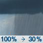Temperature: 54°F Wind Speed: 8 mph Wind Direction: SW Forecast: Widespread rain showers before 11pm, then widespread showers and thunderstorms. Cloudy, with a low around 54. Southwest wind around 8 mph. Chance of precipitation is 100%. New rainfall amounts between three quarters and one inch possible. |