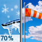 Temperature: 43°F Wind Speed: 16 to 31 mph Wind Direction: SW Forecast: Snow before 7am, then snow likely and freezing rain likely and a slight chance of sleet between 7am and 9am. Mostly cloudy. High near 43, with temperatures falling to around 38 in the afternoon. Southwest wind 16 to 31 mph, with gusts as high as 49 mph. Chance of precipitation is 80%. New snow accumulation of less than half an inch possible. Little or no ice accumulation expected. |