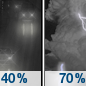 Temperature: 43°F Wind Speed: 15 mph Wind Direction: SSE Forecast: A chance of rain before midnight, then rain likely and a slight chance of thunderstorms. Mostly cloudy, with a low around 43. Chance of precipitation is 70%. |