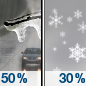 Temperature: 30°F Wind Speed: 8 to 12 mph Wind Direction: SW Forecast: A chance of snow. Partly sunny, with a high near 30. |
