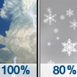 Temperature: 31°F Wind Speed: 9 mph Wind Direction: W Forecast: A chance of rain and snow before 1am. Mostly cloudy, with a low around 31. |