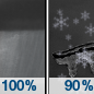 Temperature: 31°F Wind Speed: 5 to 10 mph Wind Direction: NE Forecast: Rain showers before 3am, then rain showers and a slight chance of sleet between 3am and 4am, then sleet and rain and snow showers between 4am and 5am, then sleet likely and freezing rain likely and rain and snow showers likely. Cloudy, with a low around 31. Northeast wind 5 to 10 mph. Chance of precipitation is 100%. New snow accumulation of less than half an inch possible. Little or no ice accumulation expected. |