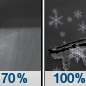 Temperature: 31°F Wind Speed: 15 mph Wind Direction: E Forecast: Rain showers likely before midnight, then sleet and rain and snow showers between midnight and 3am, then snow showers and sleet and freezing rain between 3am and 5am, then sleet and freezing rain and a slight chance of snow showers. Cloudy, with a low around 31. East wind around 15 mph, with gusts as high as 30 mph. Chance of precipitation is 100%. New snow accumulation of less than one inch possible. Little or no ice accumulation expected. |