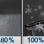 Temperature: 41°F Wind Speed: 5 to 10 mph Wind Direction: NE Forecast: A slight chance of snow showers between 7am and 10am, then a slight chance of rain showers between 10am and 1pm, then showers and thunderstorms. Mostly cloudy, with a high near 41. Northeast wind 5 to 10 mph. Chance of precipitation is 80%. New rainfall amounts between a tenth and quarter of an inch possible. |
